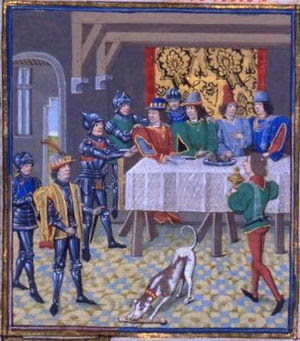 En un alarde de bienintencionado optimismo, el delfín Carlos, hijo y heredero de Juan II, pensó que todo esto se arreglaba pagando una buena cena y un par de rondas de vino francés. En abril de 1356, convocó a los desafectos nobles a un banquete en Ruan, a quienes dio la seguridad de hallarse bajo el amparo de su palabra. La palabra del delfín debía de valer su peso en oro, pues el desconfiado navarro y su secuaz de Normandía acudieron sin recelo. Otra cosa bien distinta era el precio de mercado del honor del rey francés, el cual se presentó a la hora del postre con una compañía de ballesteros, prendió al navarro, abofeteó al normando y mandó que este último fuera muerto sin juicio ni confesión.